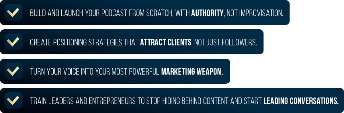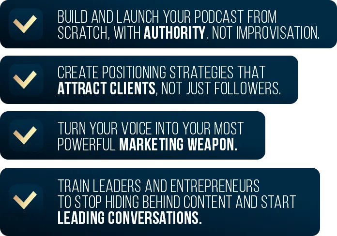 I’ve produced over 150 episodes, built communities, and helped brands stop improvising and start positioning with real impact.